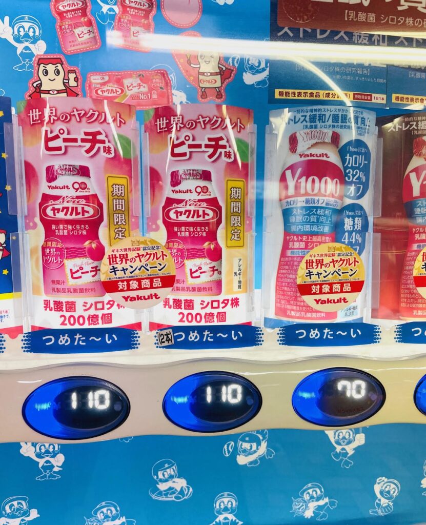 私は写真のこのヤクルトピーチ味2本で110円を買う時に、