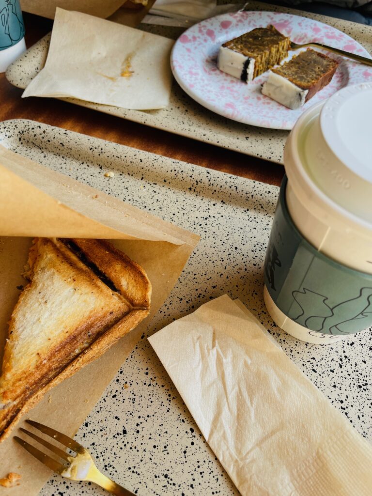 * ランチに食べたホットサンド、端っこカリカリ好きにはたまらない食感でした
