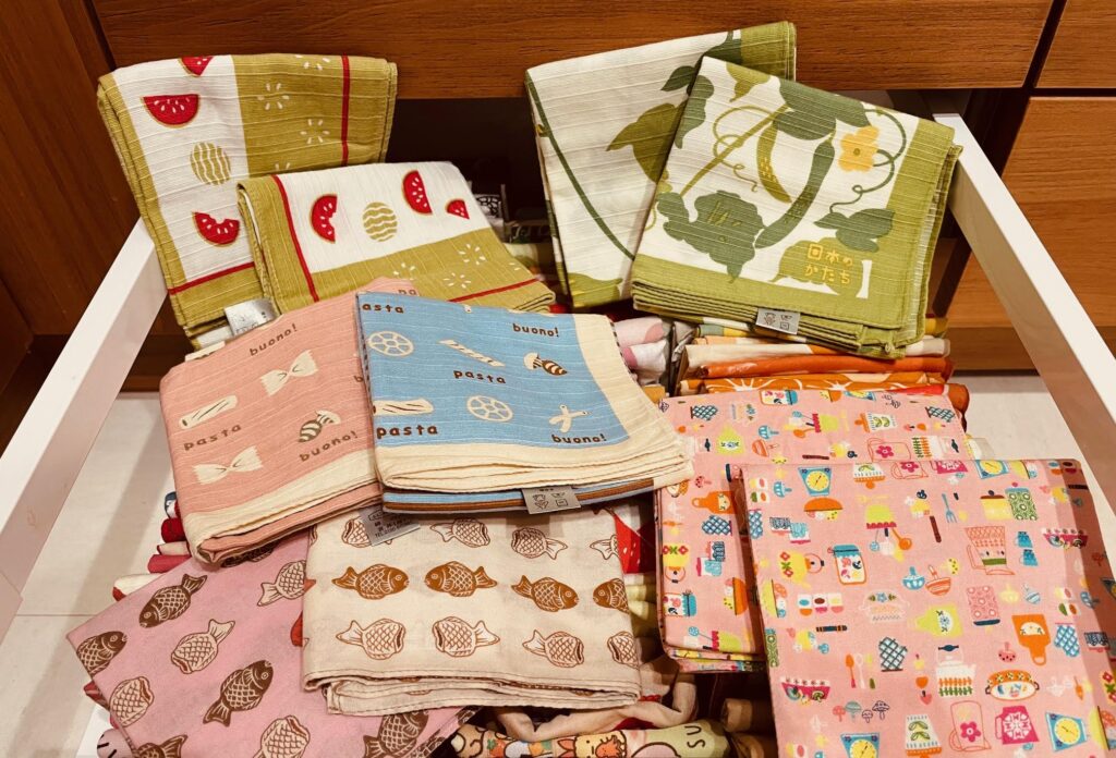縛りがないと永遠に何でも集めてしまうので、手拭いに関しては「食べ物の柄だけ」と決めています。